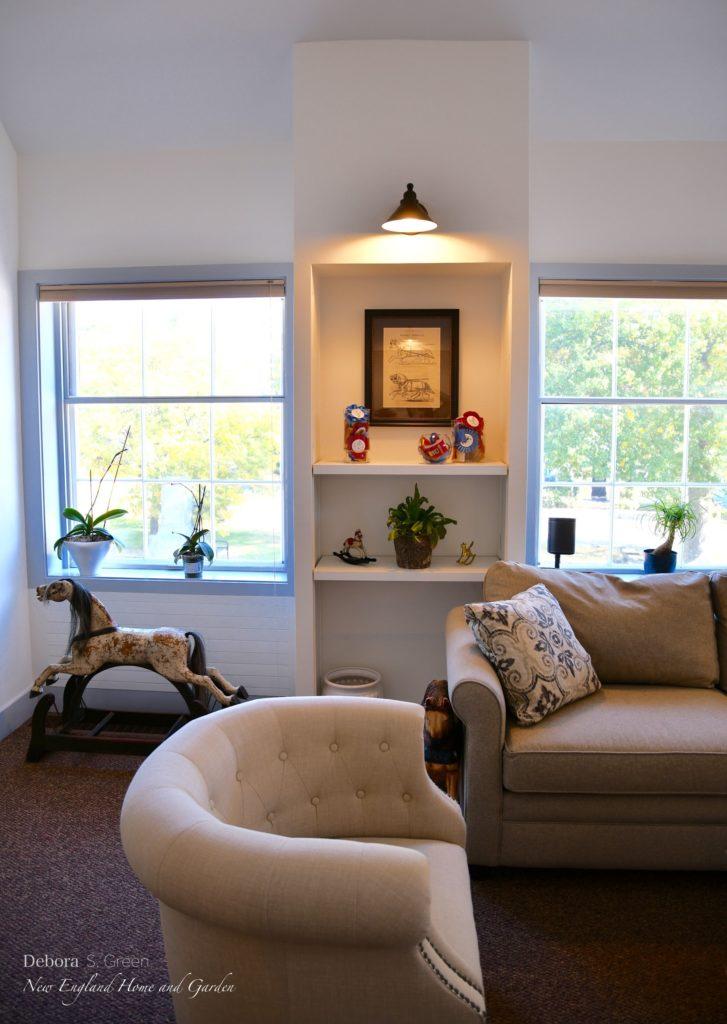 Kate is a lifelong equestrienne, made evident in the personal touches she’s placed throughout the office. Vintage rocking horses that she personally restored blend with the antique doors and trunk. Personal items often reveal what makes you as a person tick, and open an important avenue to facilitating connection between clients and co-workers.